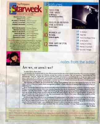 »Starweek« is the sunday magazine of »Philippine Star«, the major national daily newspaper in the Philippines.